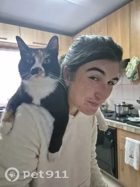 Hi, she has a brown patch in the middle of her forehead, one of her back paws also has a light brown spot on it and one front paw has a line of light brown before her white "socks". Please she jump over our back wall and we were calling her since 3:30 and she still hasn't come back. She is also chipped if that helps.