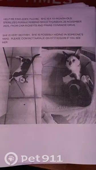 Lost Cat: Jazz, 3, in Cape Tow...