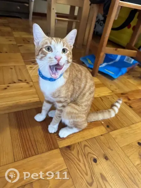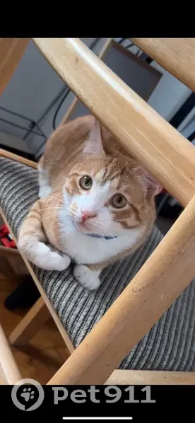 Cheesecurl is a ginger and white male. His paws, tummy, chest and jowls are white. His stripes are quite defined and he’s coat is very orange. He has a ginger patch on his right jowl and a white patch on his right leg. He just turned 1 so he’s still pretty small.