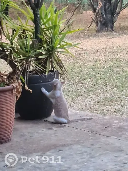 White and Ginger in colour, very vocal, 8 months old, in a small holding, has never left the perimeter until now, left our house through our bedroom window and hasn't returned.