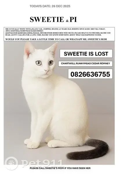 Missing cat , photo: Lost Cat: White with Black Tail, Chartwell