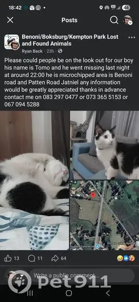 Missing cat , photo: Lost Tuxedo Cat - Patten Rd, Gauteng