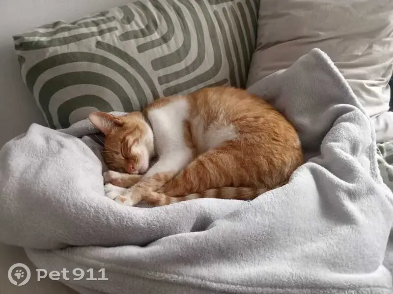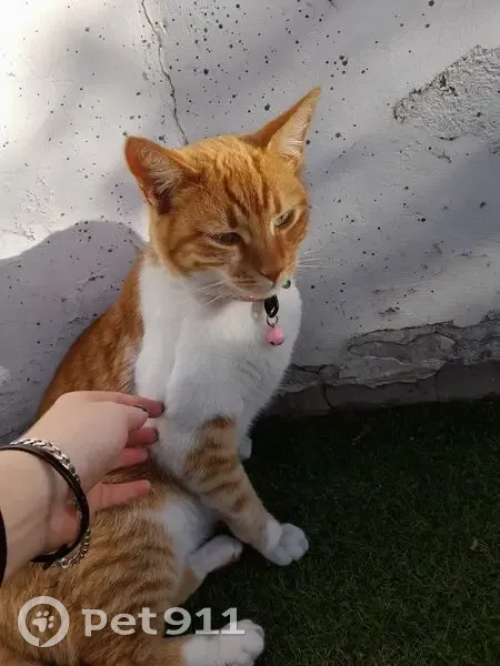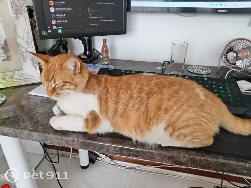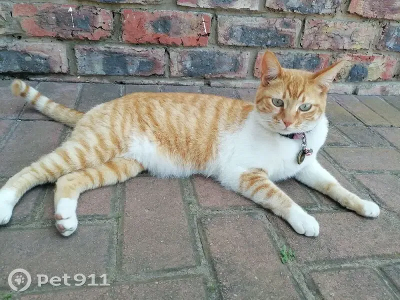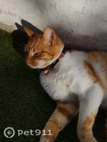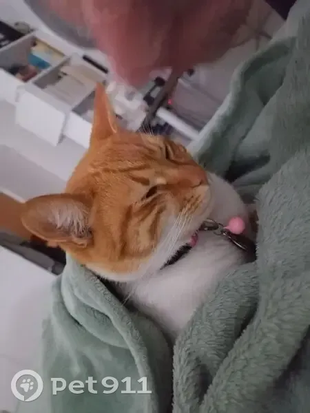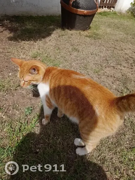 She is ginger and white spead al over her body in stripes.She has light green eyes. She has a collor around her neck with a tag that says Your Royal Highness and on the back is our information. She is very friendly and loveable. She enjoys scratches on het back and underneath her coller. We do not know how she went missing. We live in a comples and everyone here knows her, she just did not come home since the 6 of April.And no one else in the complex has seen her. We think she might have been taken by someone who was on vacation in one of the homes in our complex.