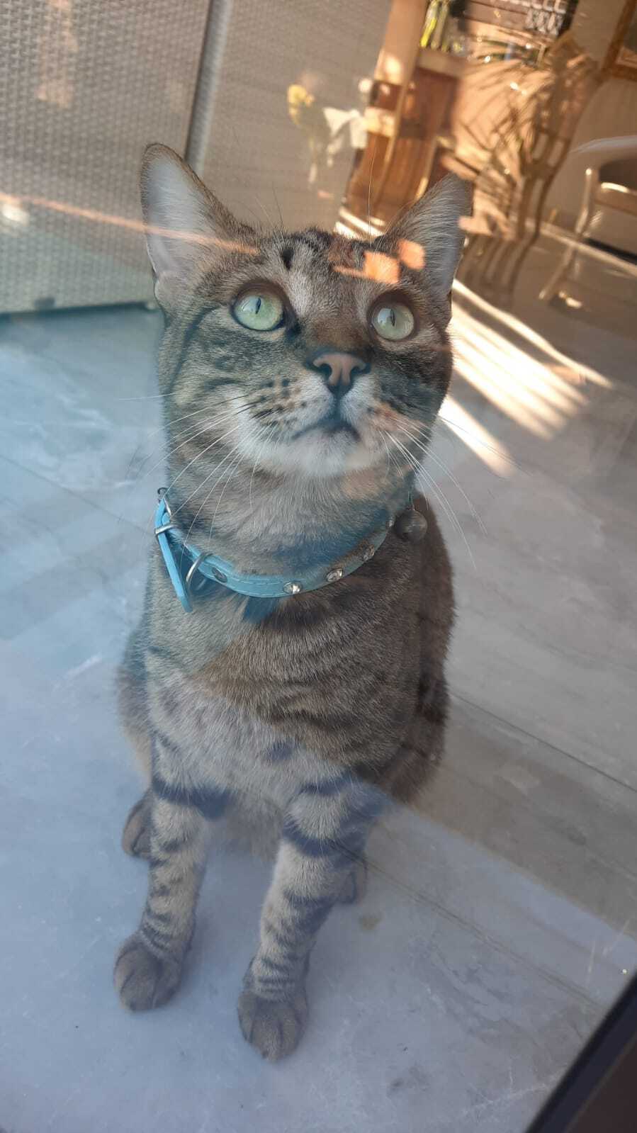 Mauwi is a tabby cat with dark Grey and black stripes, he is a male cat and around 5 years old. He is wearing a light blue collar. Mauwi is quite afraid of people and reserved. Mauwi got out of the house on Friday 5 December 2025 at 20.59. He was accidentally locked out of the garage and immediately wanted to come back in as seen on cctv footage. There are no traces seen on the cameras after that. Most of our cctv footage was also somehow erased. We noticed he was missing around 23:30 on Friday evening and we searched for him all through the night and still are searching. We are very worried and find it strange as Mauwi does not really go outside too often. Please help.