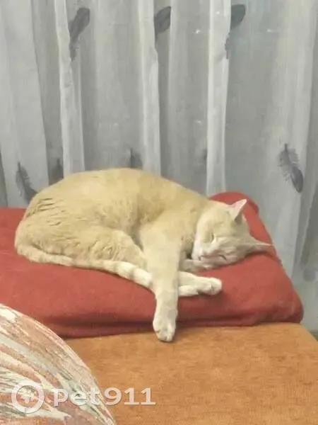 Peanut is a light ginger colour, short hair, with yellow eyes, and a white and orange striped tail. He is a nervous cat. He got spooked when I had workmen in and ran and hid somewhere.