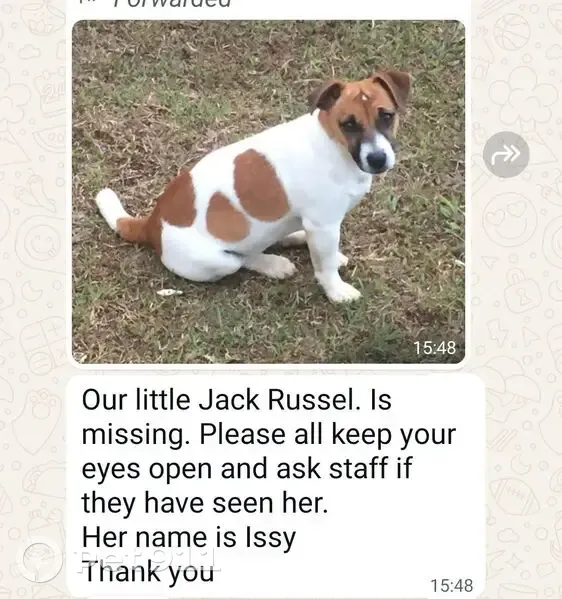 Owner took her dogs fir a walk in the neighbouring forest as she does everyday When she got home she had to rush off and upon returning home found that Issy wasnt back