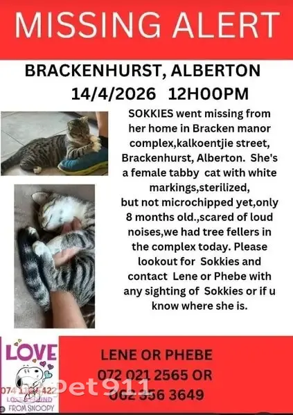 Lost pets Alberton, photo: Lost Cat: Grey with White Paws in Alberton